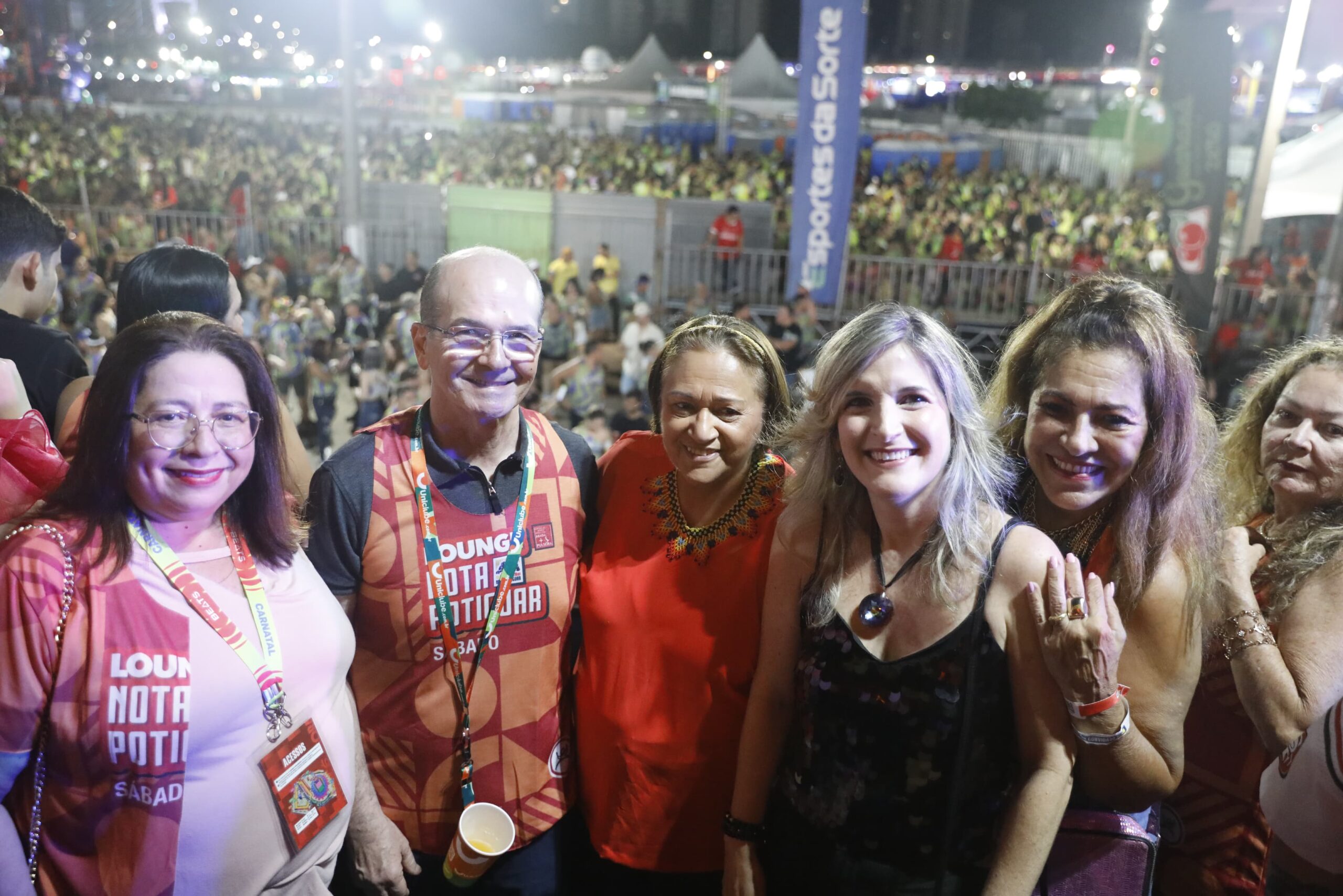 A governadora Fátima Bezerra visitou neste sábado (7) o Lounge Nota Potiguar, espaço dedicado aos participantes do Nota Potiguar durante o Carnatal 2024. O camarote foi montado na Arena das Dunas, local que sedia a maior micareta do Brasil.