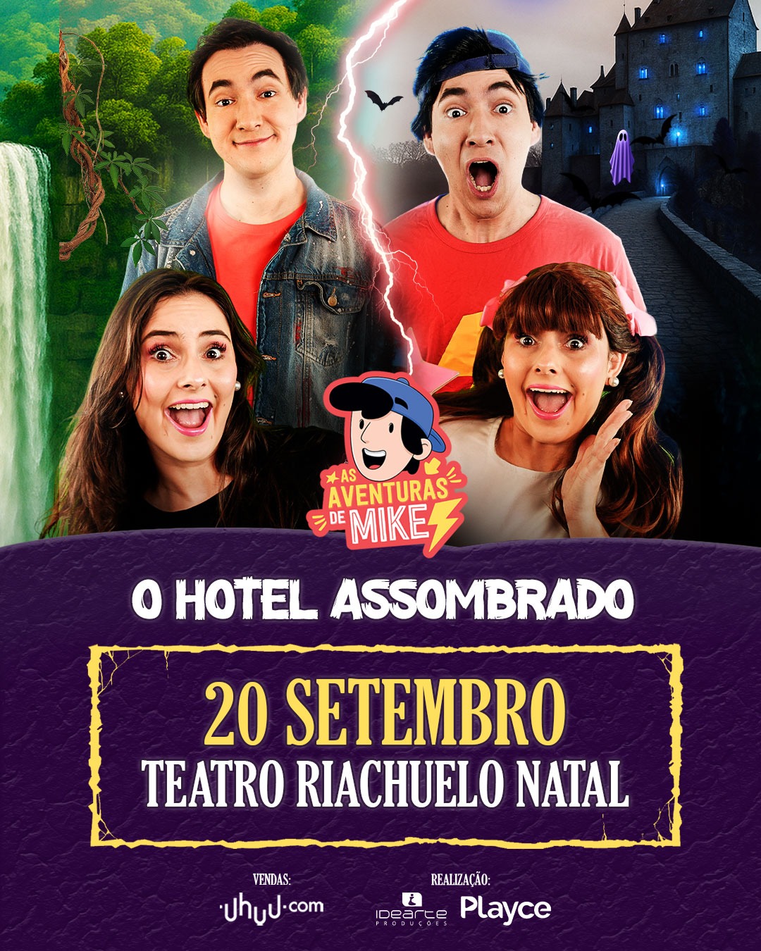 Uma aventura hilária e cheia de mistério trará Mike, Priminha Irritante, Bebê, Robson e toda a turma no dia 20 de setembro, às 16h, de volta ao palco do Teatro Riachuelo Natal no espetáculo “O Hotel Assombrado”, em uma jornada cheia de confusões, sustos divertidos e personagens irreverentes. Os ingressos já estão à venda a partir de R$ 80,00 na bilheteria do teatro ou no site Uhuu.com.