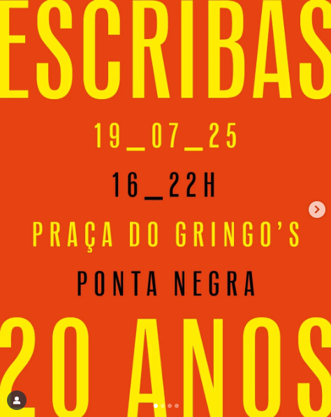 A Escribas Editora, referência na produção literária potiguar e celeiro de novos talentos, celebra duas décadas de atuação com um festival gratuito de arte e cultura no próximo dia 19 de julho (sábado), a partir das 16h, na Praça de Eventos Cláudio Porpino — também conhecida como Praça do Gringo’s, em Ponta Negra, Natal.