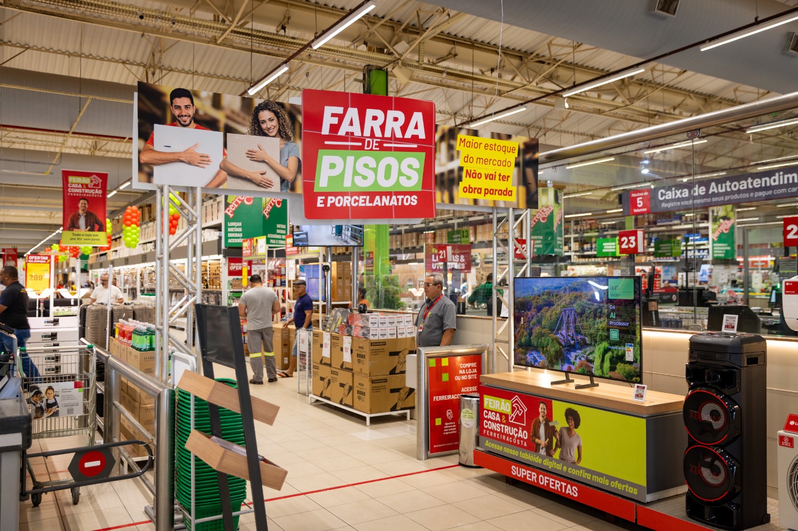 A Expo Farra de Pisos e Porcelanatos integra a campanha Farra de Pisos e Porcelanatos, que reúne mais de 1.500 opções de pisos em um só lugar. Com estoque superior a 2 milhões de m², preços competitivos e condições de pagamento em até 10 vezes sem juros, a Ferreira Costa garante variedade, qualidade e entrega imediata, evitando que obras fiquem paradas.