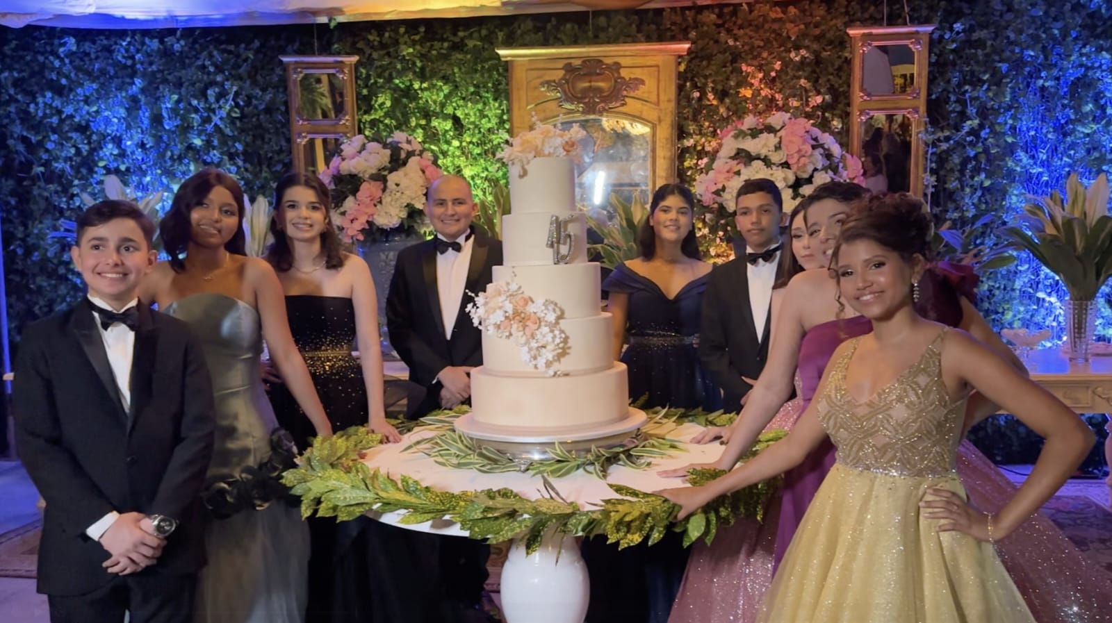 A celebração começou mais cedo, quando os debutantes foram se arrumar em um salão de beleza. Ao chegarem no espaço do evento, cerca de 300 pessoas já esperavam para começar a festa, que contou com DJ, espaço para fotos e show da banda Grafith.