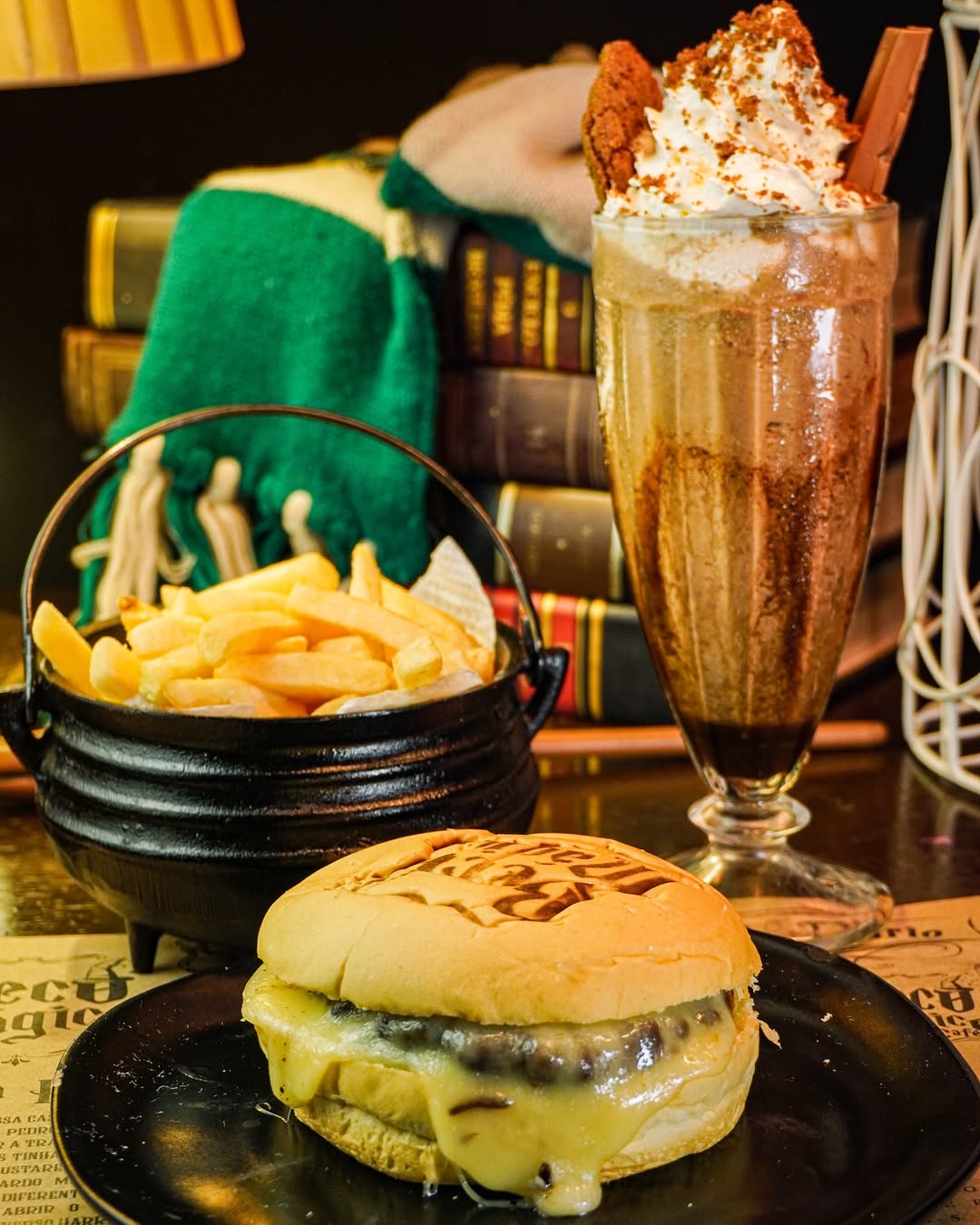 No cardápio, destaque para hambúrgueres como o “Pomo de Ouro”, a tradicional cerveja amanteigada, drinks temáticos e sobremesas inspiradas em elementos icônicos de histórias fantásticas. Cada detalhe do ambiente foi pensado para transportar o público a um cenário de magia e diversão, consolidando a marca como referência nacional em imersão temática.