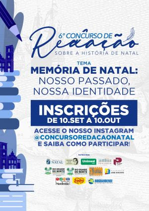 O Concurso de Redação, parte da programação do Festival Histórico de Natal, chega à sua nova edição em 2025 com o tema “Memória de Natal: Nosso Passado, Nossa Identidade”. A proposta é convidar estudantes a mergulharem na história da capital potiguar e refletirem, por meio da escrita, sobre a força das raízes que moldaram a cidade.
