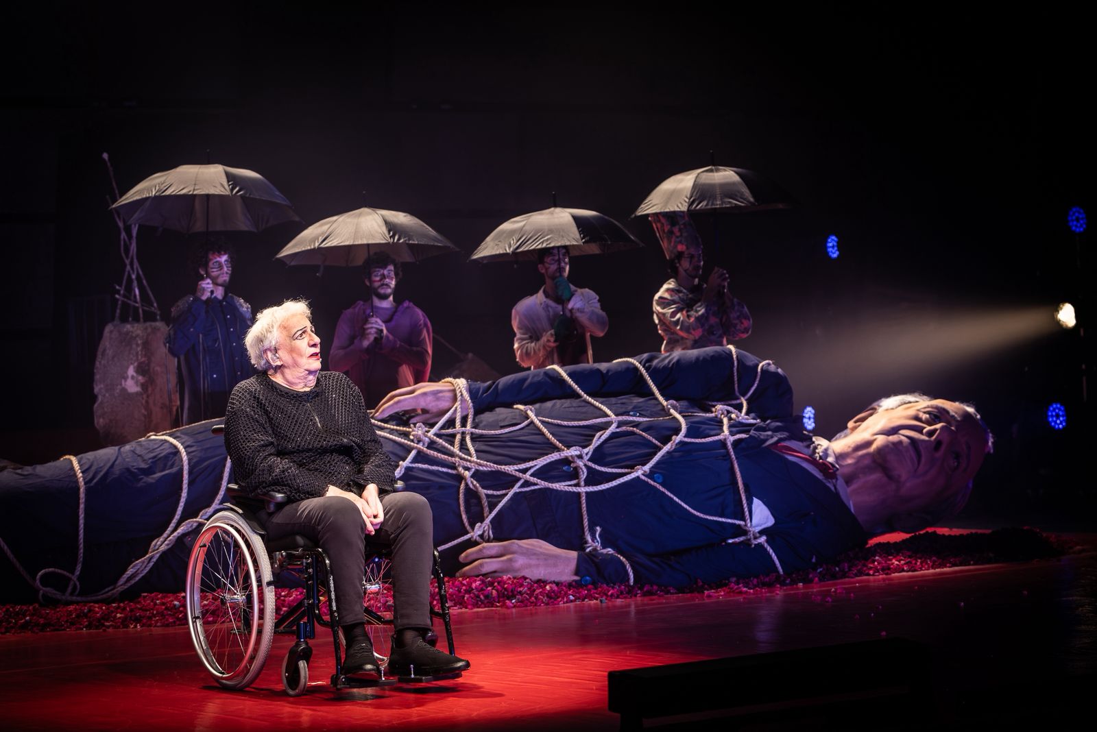 Além de Marco Nanini, o elenco é formado por Hugo Lobo, Ricardo Oliveira, Romulo Weber e Wallace Lau. A montagem tem concepção visual do próprio Gerald Thomas, com figurinos de Antonio Guedes, iluminação de Wagner Pinto e cenografia de Fernando Passetti.
