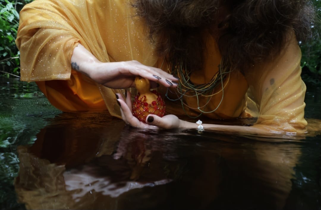 “A água é um elemento de centralidade na minha vida e criação artística, mesmo quando eu não tinha consciência da profundidade disso. São quase 10 anos trazendo-a como protagonista da minha poética, relacionando-a aos meus deslocamentos territoriais e ancestralidade”, explica a artista.