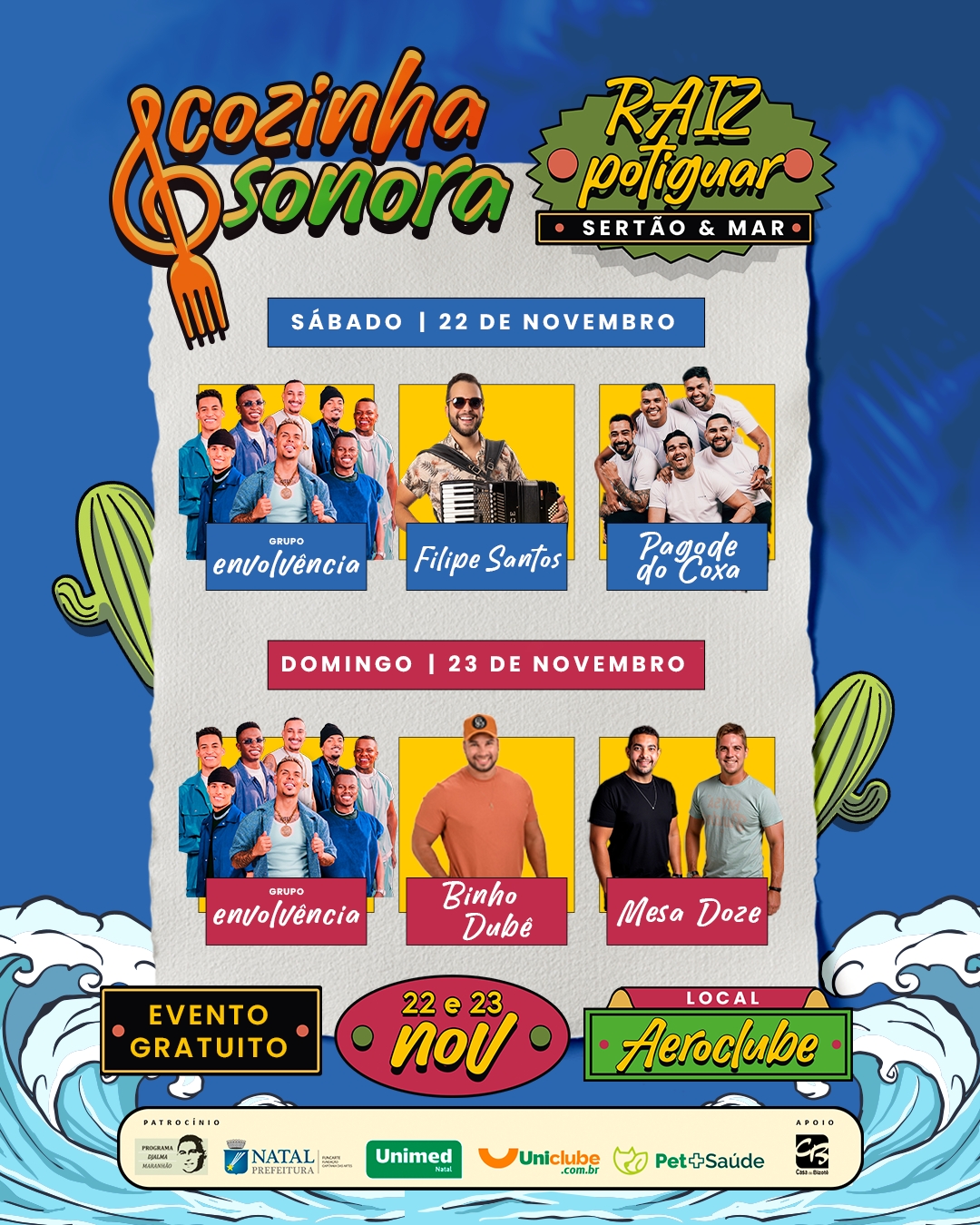 Com patrocínio da Lei Djalma Maranhão, Prefeitura do Natal e Unimed Natal, o evento reforça o compromisso com a valorização da cultura potiguar e o fortalecimento da economia criativa, integrando música, gastronomia e arte em um só espaço.