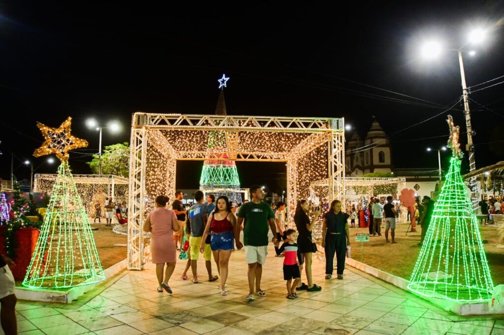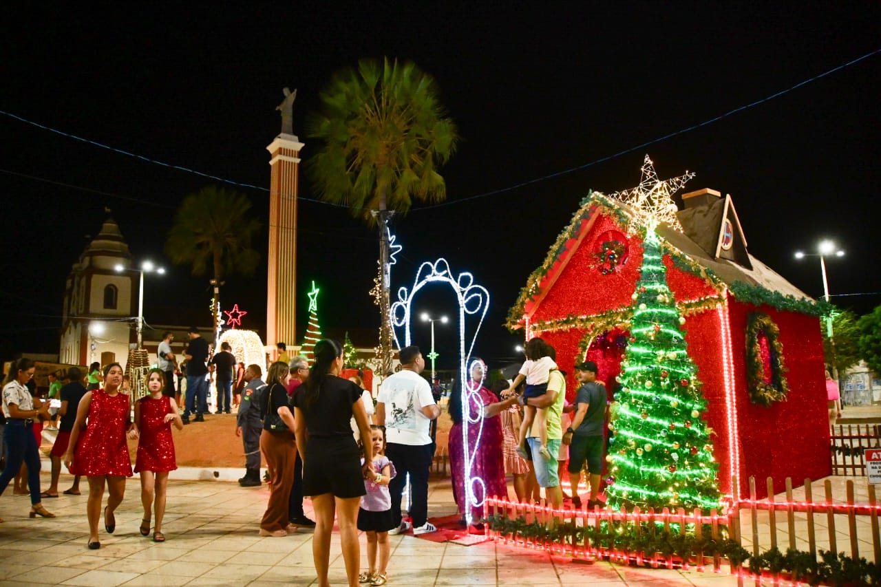 A praça, símbolo maior da cultura e do amor por Assú, recebeu decoração temática com árvore de 15 metros de altura, casa de Papai Noel e trenó. Famílias de toda a cidade se reuniram no local para conferir as novidades da iluminação deste ano. O espaço, que abriga o São João Mais Antigo do Mundo, reforça a identidade e a força do povo assuense.