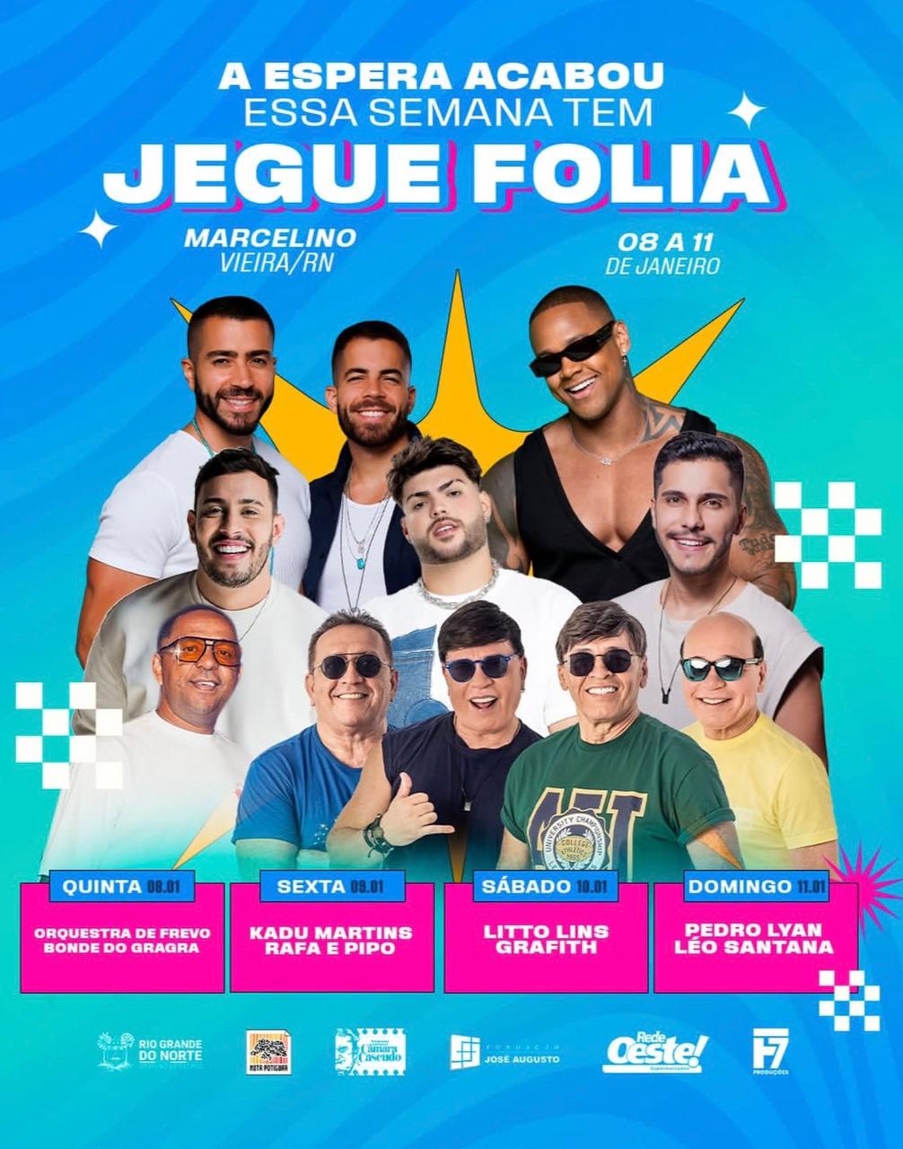 O município de Marcelino Vieira (RN) se prepara para viver uma edição especial do Jegue Folia 2026, que acontece de 08 a 11 de janeiro, consolidando o retorno do evento com uma proposta ainda mais estruturada, moderna e organizada. Neste ano, a festa apresenta uma plástica visual renovada e uma estrutura em outro nível, reforçando que o Jegue Folia voltou com força total ao calendário cultural da região.
