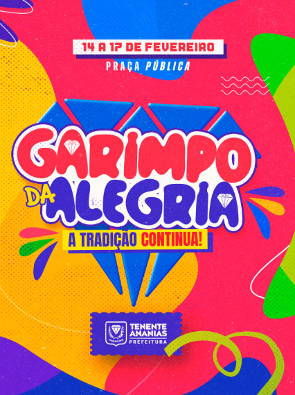 A Prefeitura de Tenente Ananias/RN confirmou que o municipio vai contar com mais uma edição do “Garimpo da Alegria”, o Carnaval da cidade. A festa de momo acontecerá nos próximos dias 14 a 17 de fevereiro, com programações gratuitas e em praça pública. Com um dos carnavais mais tradicionais do Alto Oeste, a realização do Garimpo da Alegria será realizado na Praça Pública da cidade, com bandas locais e muita festa. A organização dos blocos garante lazer e entretenimento para os tenente-ananienses.