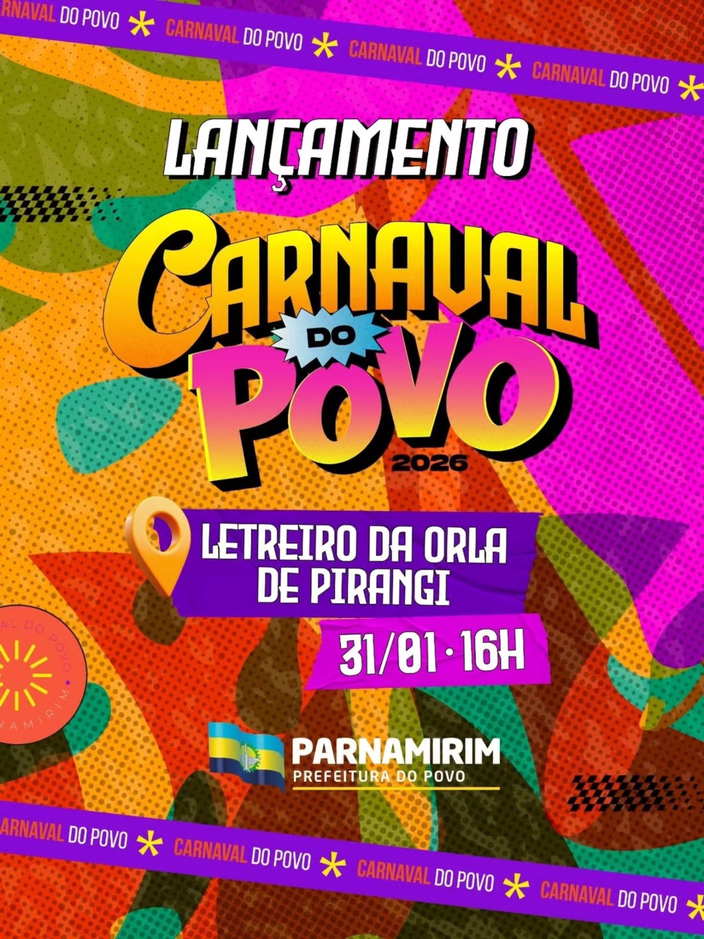A prefeitura de Parnamirim já anunciou que o lançamento oficial do Carnaval da cidade tem data marcada. O anuncio das atrações do carnaval do Povo 2026, acontece no próximo dia 31 de janeiro, a partir das 16h. O local escolhido é o Letreiro da Orla de Pirangi, ponto tradicional dos veranistas e turistas. Segundo a gestão municipal, o evento deve reunir identidade, tradição e muita animação.