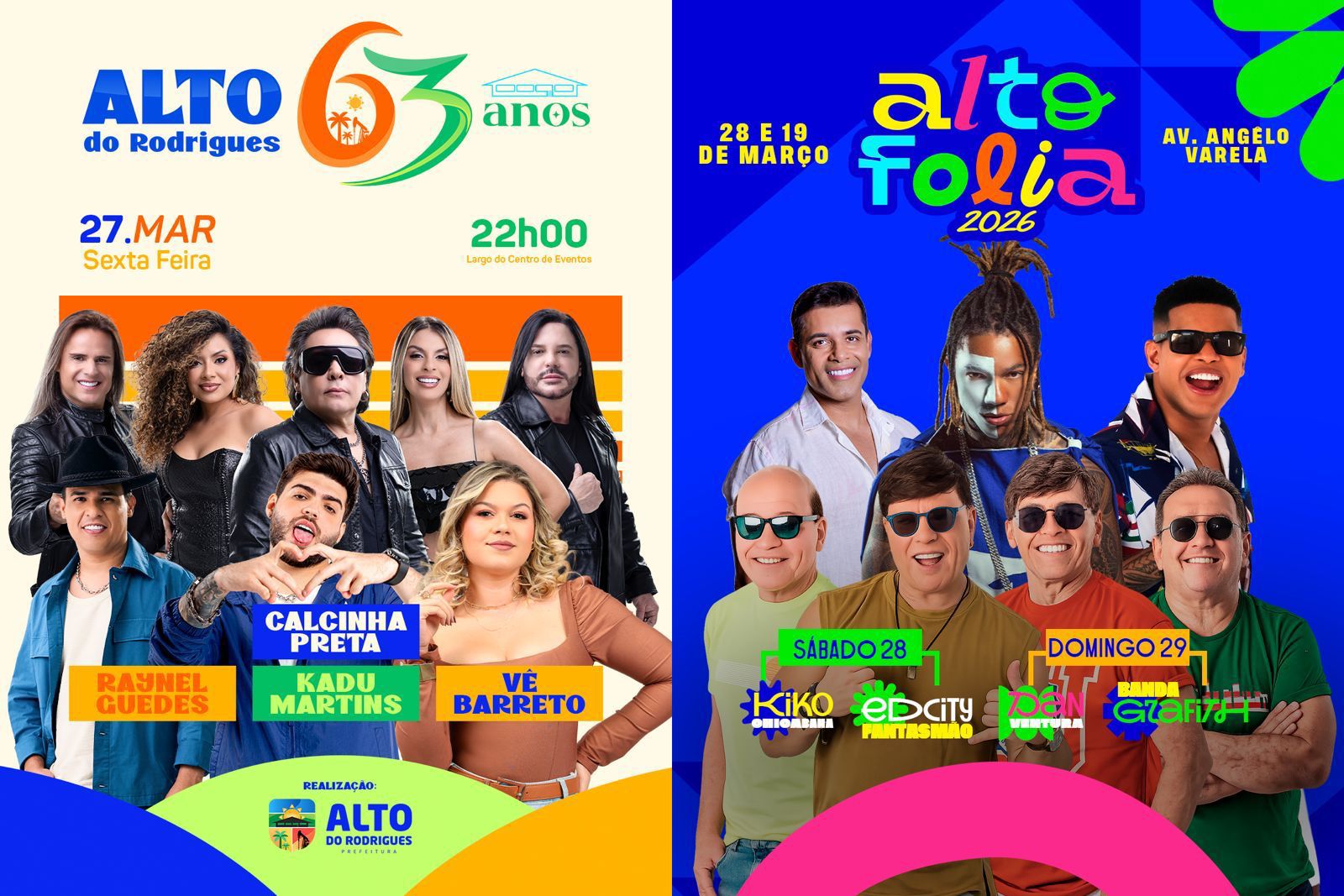 A prefeita de Alto do Rodrigues, Dra. Raquel, lançou no último domingo, dia 8 de fevereiro, a programação oficial do Alto Folia e das comemorações pelos 63 anos de Emancipação Política do município, celebrados em 28 de março. O calendário reúne atrações musicais, atividades culturais, esportivas, religiosas e de lazer, distribuídas ao longo de todo o mês de março, com foco na participação da população e no fortalecimento do turismo local.