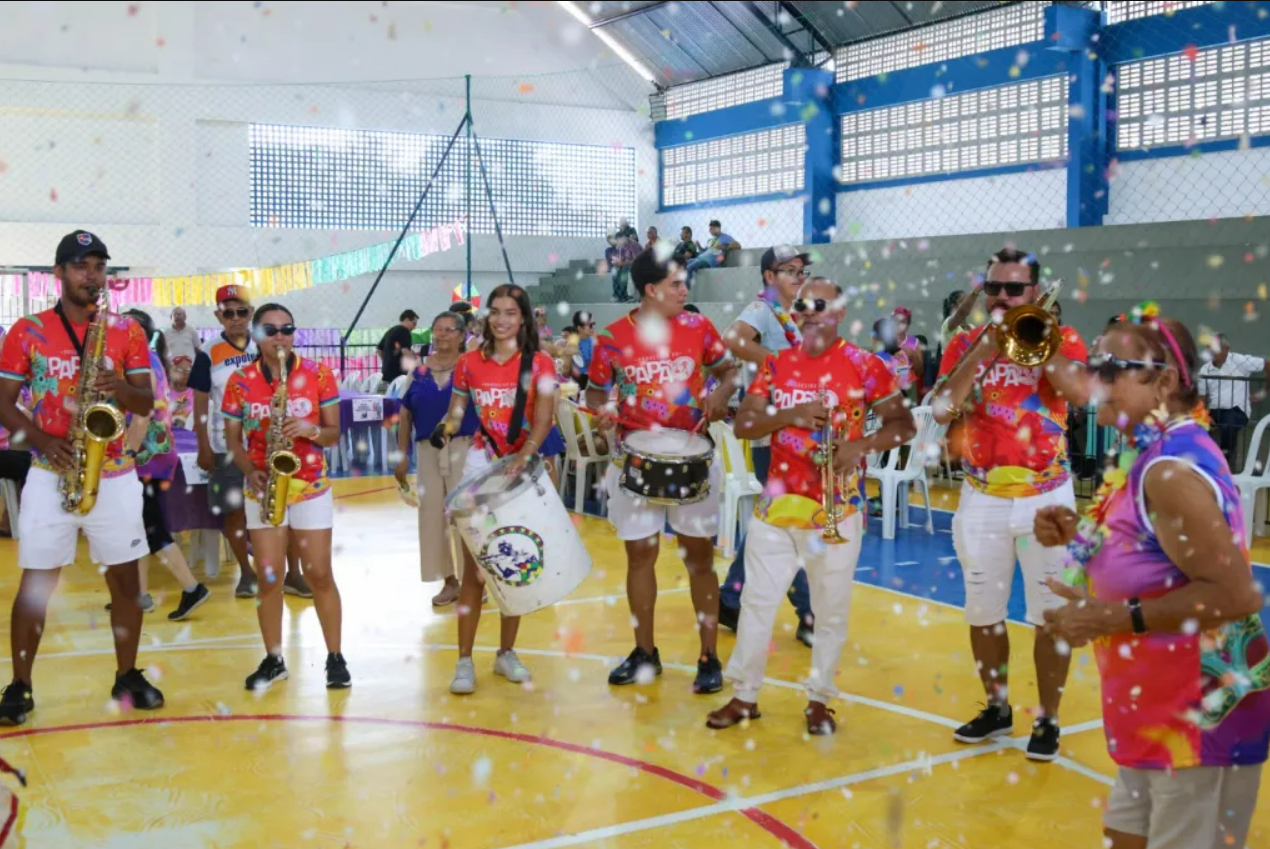 Garantir lazer para a terceira idade também é política pública. Para isso, os idosos se divertiram com o trio pé de serra, com a equipe da Secretaria de Esporte e Lazer (SEL), que trouxe músicas alegres e coreografadas, e com a bandinha de frevo, na presença do Rei e da Rainha do Carnaval 2026.