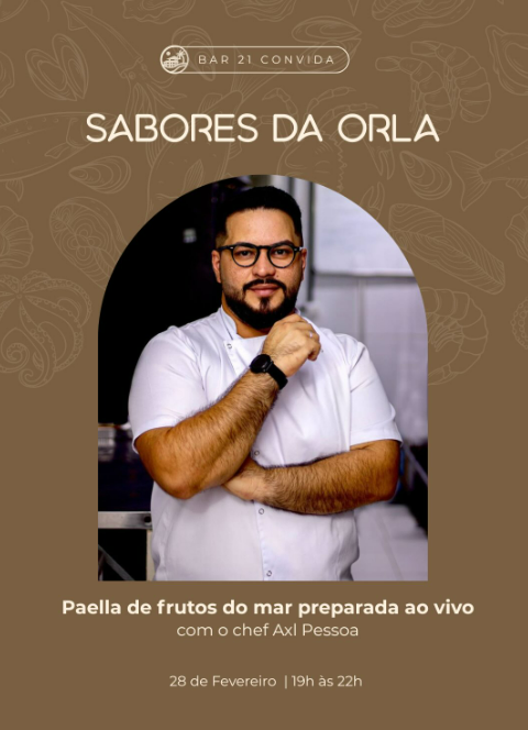 Neste sábado (28) de fevereiro, o Restaurante e Bar 21 Jenipabu promove o projeto Sabores da Orla, em Extremoz. Uma experiência gastronômica única em Jenipabu, de frente ao mar, que tem a assinatura do chef Axl Pessoa que comanda o salão. O evento começa as 19h e os convidados vão acompanhar de perto o preparo da paella de frutos do mar ao vivo, preparada pelo chef, acompanhado de um bom vinho, sem falar na vista privilegiada da Praia de Jenipabu.