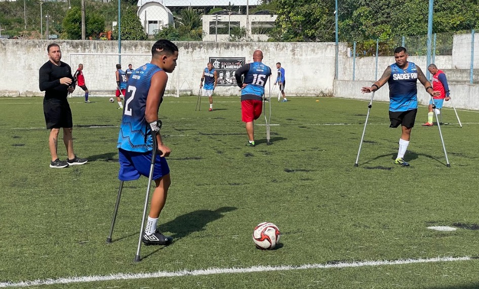 O futebol de amputados é uma modalidade adaptada para pessoas com amputações ou deficiências nos membros. Podem participar atletas com amputação em membros inferiores (jogadores de linha) ou superiores (goleiros). Cada equipe tem 7 jogadores em campo, e com exceção do goleiro, todos utilizam muletas durante o jogo. As regras da Fifa também são adaptadas para atender às particularidades dos atletas, e assegurar o equilíbrio competitivo entre as equipes e a segurança durante a partida.