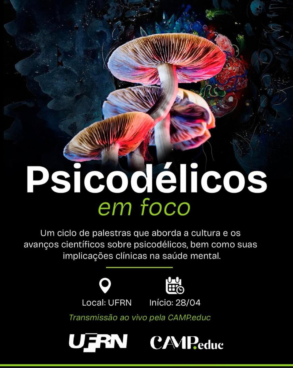 A comunidade da UFRN, bem como o público em geral pode inscrever para participar do ciclo de palestras “Psicodélicos em Foco: Ciência, Clínica e Cultura”. O evento é gratuito e será realizado presencialmente no Auditório da Reitoria da UFRN, com transmissão online ao vivo iniciando sempre as 18h30. As palestras serão realizadas uma vez por mês, iniciando em abril. Confira a programação: