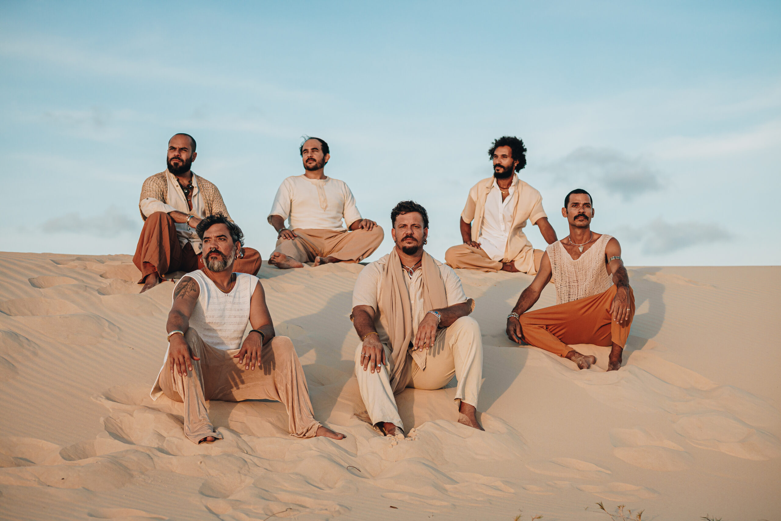 Essa dimensão simbólica encontra ressonância direta na arquitetura sonora do álbum. Segundo a produtora executiva Babi Baracho, “Dunares” representa uma virada de chave e marca uma consistente transição de amadurecimento musical e identidade do grupo. De um lado, o disco mantém o chão areado, o pulso telúrico e a energia percussiva fincada na terra e nas tradições. De outro, se abre para composições atravessadas por reflexão existencial, espiritualidade e densidade emocional. O resultado é uma obra que não se acomoda numa leitura única: ela pulsa entre o corpo e o pensamento, entre a celebração e a consciência, entre o rito coletivo e a elaboração íntima.