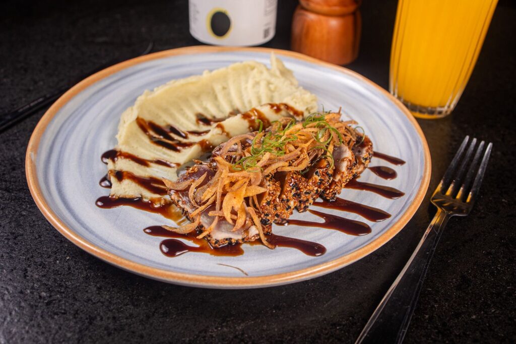 A fusão de culturas também aparece com força no Lotus Japanese Fusion Cuisine, onde o menu percorre diferentes influências asiáticas e contemporâneas. O tuna tartare servido com paper rice e o atum selado com azeite de trufas revelam um trabalho cuidadoso de equilíbrio entre tradição e inovação.